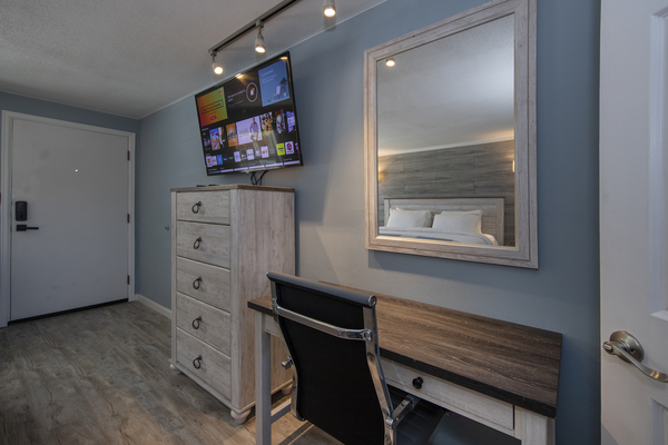 Our Courtyard King Rooms offer 300+ Sq. Ft. of Space and offer a nice size walk-in shower, Led Cable TV, Compact Refrigerator, Microwave, Coffee maker and free Wi-Fi